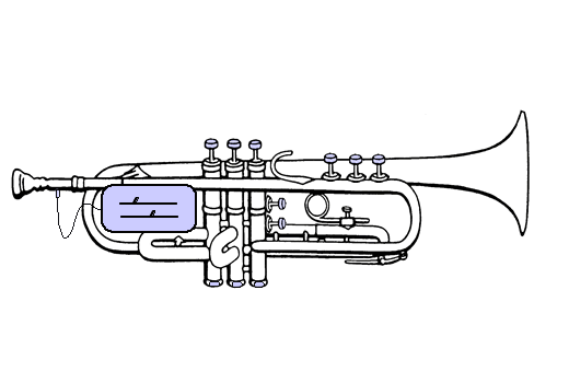 This is an actual trumpet retrofitted to produce MIDI signals. The instrument is still playable as a trumpet. Its sound is captured by a microphone pickup, amplified, rectified and then sent as a control voltage to a microcomputer which uses it as Key Velocity data for MIDI Note On signals. There was no pitch detection implemented. Instead, the MIDI notes are determined by switches mounted at the bottom of the three trumpet valves and 5 more mounted on the trumpet. Two slide pots and a pedal provide MIDI Controller data.