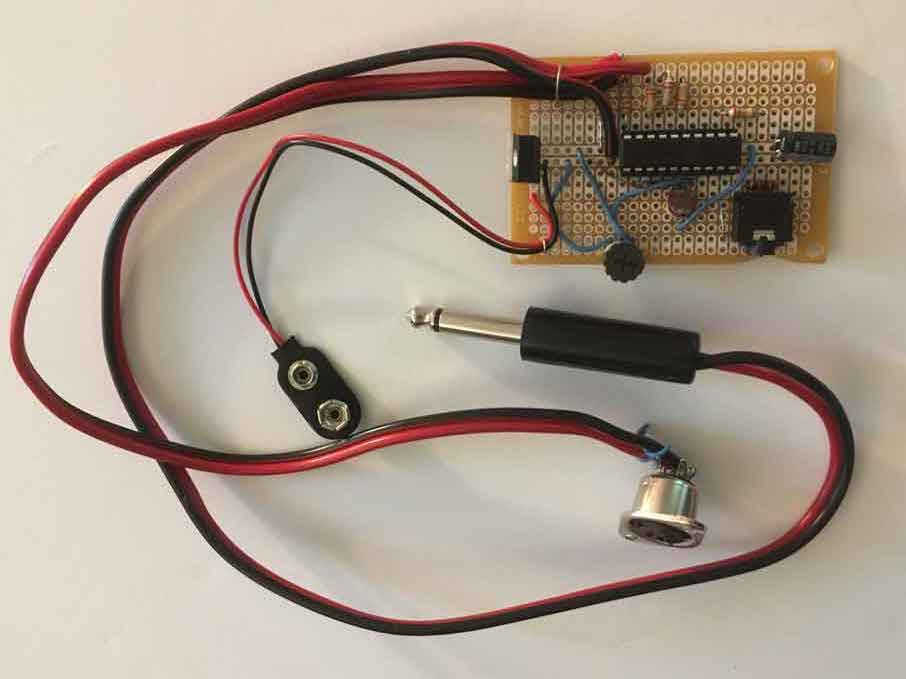 The pedal's 1/4" phone plug is replaced with a MIDI plug and the circuitry requires only a switch, a 3volt coin cell battery, and an 18 pin PIC16F87. No other components are necessary.
